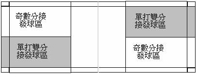 2. 偶數分由站右發球區球員發球,奇數分由站左邊發球區球員發球。(新制)