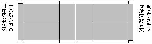 接球方回球的有效區域如圖:(若球落地點不在灰色區,即為界外球。)